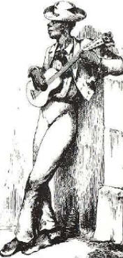 intérprete de "un instrumento rústico de tres cuerdas dobles y