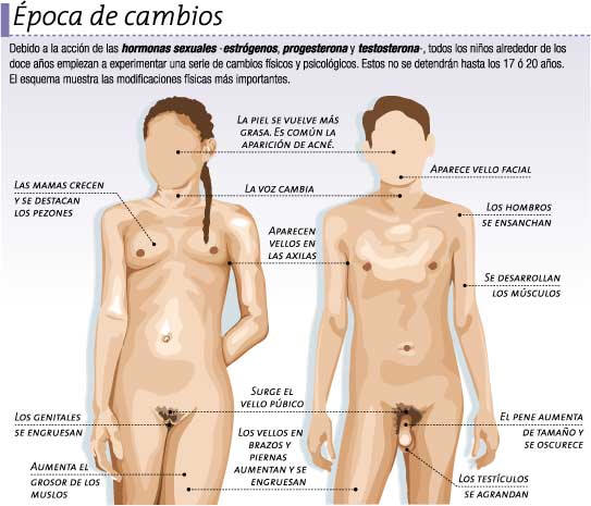 4. Completa el siguiente diagrama de Venn mostrando los cambios que ocurren en el cuerpo femenino y masculino durante la pubertad.