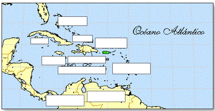 A.Localiza las regiones a continuación. Puedes consultar en Internet. (10 puntos) 1. Colombia 2. Cuba 3. Haití 4. Jamaica 5. Las Bahamas 6. Mar Caribe 7. Puerto Rico 8. República Dominicana 9. Venezuela 10. Islas Vírgenes Americanas