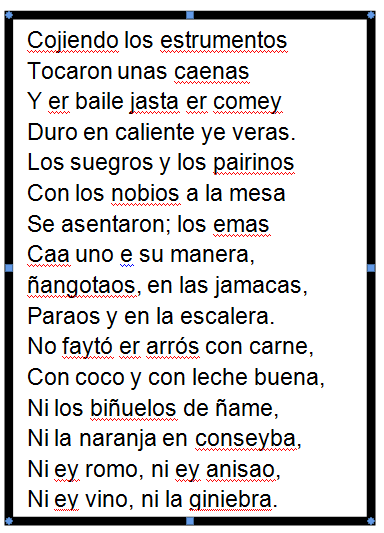 1. Cantar de Mío Cid, anónimo, fragmento 2. Canción del pirata, José de Espronceda 3. Un casamiento jíbaro, Manuel Alonso 4. La carta, José Luis González 5. “Un señor muy viejo con alas enormes”, Gabriel García Márquez
