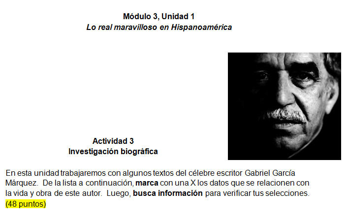 Módulo 3, Unidad 1 Lo real maravilloso en Hispanoamérica Resumen de actividades