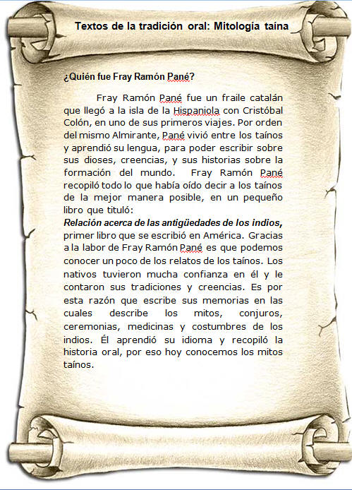 Fray Ramón Pané. Estudiaremos estos mitos para: