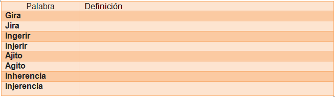 Define y construye una oración con cada uno de las siguientes palabras: