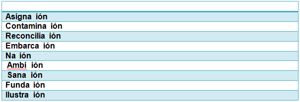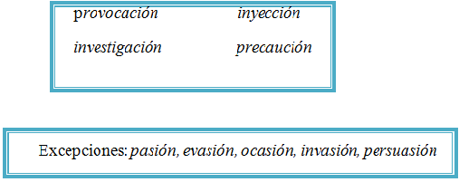 1- Se escriben con C, las palabras terminadas en ación , ección,