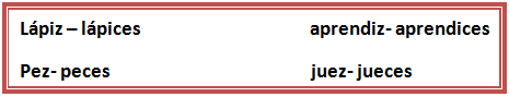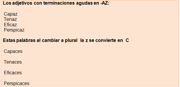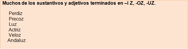 6. Se escribe con C, el plural de las palabras terminadas en z: