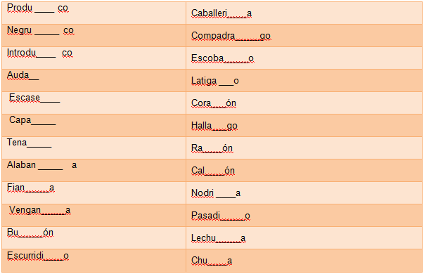 Completa las siguientes palabras con “c” o con “s”: