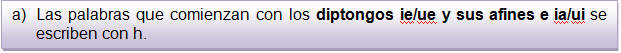 Ejemplos: huevo, hielo, herbáceo, hueso, ahuecar, hiato, huida.