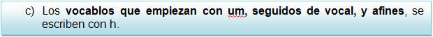 Ejemplos: humus, ahumado, humilde, humano.