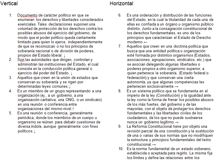 Completa el siguiente crucigrama, siguiendo cada una de las pistas. El