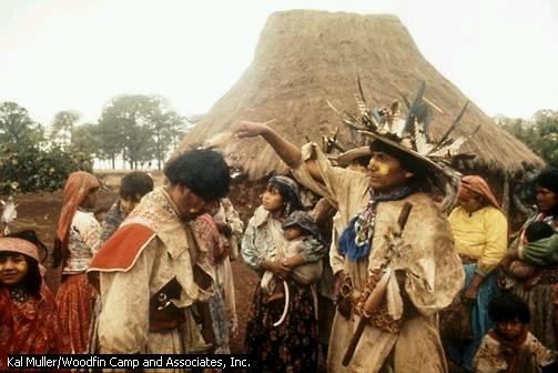 Los indígenas del grupo pueblo aportan una música en un tono más bajo; utilizan más los coros y ejecutan bellas danzas rituales con disfraces. A veces intervienen personas que realizan alguna representación que sirve de entretenimiento en los bailes más serios.