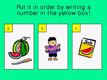 something in order. We use words such as first, next, and last to help us when we are putting things in order. We can also use numbers (1, 2, 3) to