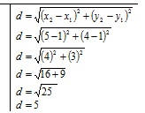 Ejemplo: Aplicar la fórmula de la distancia en el plano cartesiano para hallar la distancia entre los puntos. Encuentra la distancia entre los puntos (1, 1) y (5 ,4)