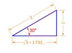 Apréndete "" - ¡te puede ayudar en un examen! Ejemplo 1: ¿cuáles son el seno, coseno y tangente de 30° ? El triángulo clásico de 30° tiene hipotenusa de longitud 2, lado opuesto de longitud 1 y lado adyacente de longitud √3: