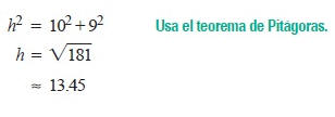 La escalera mide 7.23 m. Ejemplo 2:Una antena está sujeta al suelo por dos cables que forman un ángulo recto de longitudes 27 y 36 cm. ¿Cuál es la distancia que separa los dos puntos de unión de los cables con el suelo?