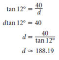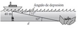 Ejemplo: El sonar de un barco de salvamento localiza los restos de un naufragio en un ángulo de depresión de 12°. Un buzo es bajado 40 metros hasta el fondo del mar. ¿Cuánto necesita avanzar el buzo por el fondo para encontrar los restos del naufragio?