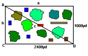 Para combatir un incendio forestal, el Departamento de Silvicultura desea talar un terreno rectangular alrededor del incendio, como vemos en la figura. Las cuadrillas cuentan con equipos de radiocomunicación de 3000 yardas de alcance. ¿Pueden seguir en contacto las cuadrillas en los puntos A y B?