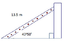 4- La escalera de un coche de bomberos está apoyada contra una pared. Halla la distancia que sube la escalera sobre la pared si forma un ángulo de 43o50’ con respecto al piso.
