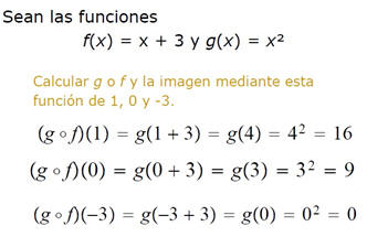 donde g(x) es el dominio de f. La composición de g y f se define por: