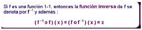 Funciones Inversas- En ocasiones se puede invertir la relación entre dos conjuntos produciendo una nueva función.  Siempre que se tiene una función uno uno, se puede definir una nueva función: la función inversa.  Si f es una función uno – uno, entonces la función inversa de f se denota por