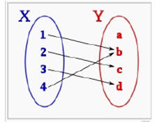 Una función consiste en dos conjuntos, dominio y rango y la regla  que asigna   a cada miembro  del dominio exactamente un miembro del rango.  A cada miembro del rango debe  serle  asignado  por lo menos un miembro del dominio. Si la relación entre dos variables x y y es una en la que para cada valor de y hay exactamente un valor de x, se dice que y es una función de x.
