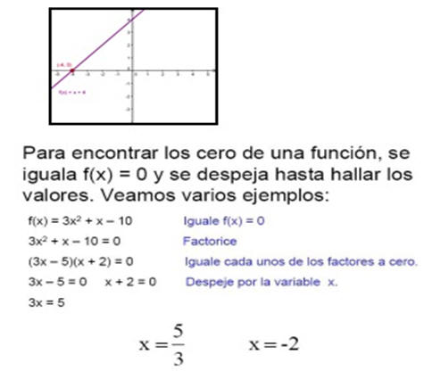 Un cero de una función es la solución de una ecuación  f(x) = 0.  Los ceros de una función corresponde a los puntos en los cuales la gráfica de la función atraviesa el eje de x.