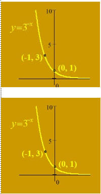 Dominio: Los Reales Rango: (0, ) No tiene intercepto en x Intercepto en y: (0,1) Asíntota horizontal: y = 0 cuando x es infinito Es creciente Es uno-uno