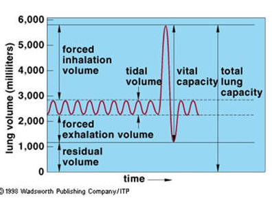 7. Observa la siguiente gráfica que representa el mecanismo de la respiración normal. ¿Cuántos litros de aire se mueven en la respiración?