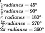 Por cuestión de conveniencia, presentaremos las siguientes equivalencias de medidas de ángulos en grados y radianes por la utilidad que su conocimiento tiene en el estudio de la trigonometría.