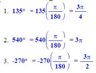 Ejemplos: Convierta las siguientes medidas de grados a radianes.