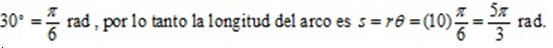 Ejemplo: Encuentre la longitud del arco de un círculo con radio 10 m que subtiende un ángulo central de 30°.