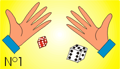 Muestra el dado mas grande con claridad en tu mano derecha , a la vez que tu mano izquierda oculta el dado menor entre las carnosidades de los dedos ( esto es mas facil de lo que parece ) mientras muestra su dorso al publico figura Nº 2 . Ahora , el pulgar de la mano derecha sujetara el dado ( figura Nº 3 ) a la vez que dicha mano gira cara abajo para situarse encima de la mano izquierda que a la vez habra girado para situarse cara arriba figura Nº4 .
