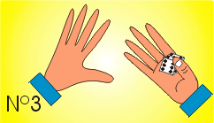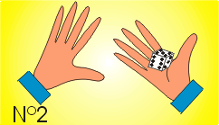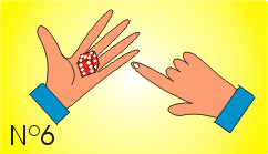 La mano izquierda se cierra mientras que la mano derecha señala a la izquierda como queriendo decir " ahi esta el dado " figura Nº5 . Para los espectadores lo que habras echo es depositar un dado en tu mano izquierda , mientras que realmente lo has retenido en tu mano derecha . todo el movimiento desde la figura Nº3 a la figura Nº5 debe de ser uno solo, sin pararse en ningun momento (debe parecer como si realmente dejaras el dado en la otra mano, practica delante del espejo).