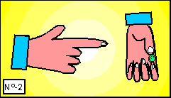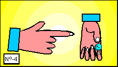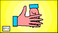 Pasa ahora la mano derecha por delante de la moneda fig. Nº 3 , tapandola por unos segundos . Al retirar la mano , esta se llevara tambien la moneda pequeña , y girara la moneda grande para que quede colocada paralela a la mano fig. Nº 4 , para el publico la moneda se habra transformado en otra de mayor valor . Y tu sonrie por que estaras haciendo MAGIA...