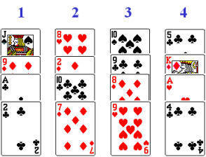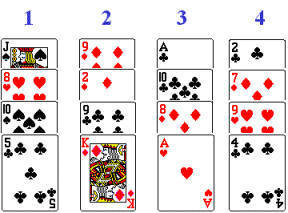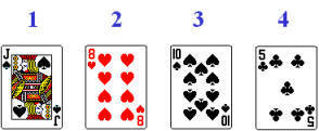 1.- Coloque 4 cartas cualesquiera cara arriba sobre la mesa, como se