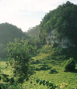 -Cerros a los pies de las montañas en el S de Puerto Rico. Se trata de