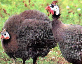 meleagrsi Ginea Pinatda La guinea pintada es un ave de tamaño mediano, con un cuerpo que mide entre 20-25 pulgadas de alto. Su peso fluctúa entre 2 y 3 libras y media. Su caminar es como el de las gallinas y su plumaje es negro con puntos blancos por todo el cuerpo. excepto en el pecho y el cuello. Su cabeza y la parte superior del cuello no tienen plumas y son de color azul blancuzco, con pequeñas áreas rojas alrededor del pico y la garaganta. Posee, además, una cresta ósea que se eleva en la parte superior de la cabeza. Hábitat- La Gallina guinea es natural de las selvas , sabanas y matorrales, ecuatoriales de Africa, al sur de la Sahara Fue introducida a América por los europeos en el siglo16 Información general- En el siglo 18, FRay Iñigo Abbad y Lasierra comentó en su obra Historia Geográfica, Civil y Natural de la Isla de San Juan Bautista de Puerto Rico, que en los bosques de la Isla abundaba la guniea, que fueron introducidas por los genoveses en la década de 1510. Estas eran cazadas por perros y en el Caribe, la guinea desarrolló plumaje en el vientre y el interior de las alas. La guinea es diurna y duerme en las ramas de los árboles. Se alimenta de granos e insectos que encuentra en el suelo. En ocasiones, cae presa de los guaraguaos y los halcones peregrinos, que se alimentan de aves como ésta. Pone entre 6 y 12 huervos, que solo la hembra incuba. El período de encubación es de poco menos de un mes.