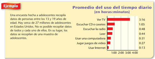 Una encuesta es un estudio que se hace para reunir datos. Gran parte de la información que se usa para tomar decisiones viene de las encuestas. Muchas encuestas reúnen datos sobre la gente. Las tiendas hacen encuestas a sus clientes para averiguar qué productos ofrecer. Las estaciones de televisión hacen encuestas a los televidentes para saber qué programas son populares. Los datos de las encuestas se recopilan de varias maneras, e incluyen las entrevistas cara a cara, las entrevistas por teléfono y las preguntas por escrito que se contestan y se devuelven por correo.