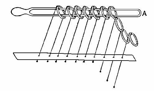 Este juego que aparece en la edición número 1550 de su libro De Subtililate. Los anillos estaban ordenados de modo que sólo el anillo A en uno de los extremos podía ser puesto y sacado sin problemas. Para sacar cualquiera de los otros, el anillo que se quisiese sacar tenía que estar en la barra próximo a A y todos los otros entre el anillo que se deseaba sacar y A tenían que estar fuera de la barra.
