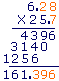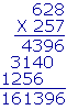 -- follow the same procedure for each digit. However, when we multiply by 5 tens, the product is 3140 tens. Therefore we write 0 in the tens column. When we multiply by 2 hundreds, the product is 1256 hundreds, and so we write 6 in the hundreds column. We can state the rule as follows: |