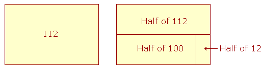 To find half of a number, divide by 2; to find third, divide by 3; to find a fourth, divide by 4; and so on. (This is a theorem whose proof is indicated in Lesson 10, Example 5.) Example 6. How much is half of 112? Solution. We must divide 112 by 2. But to do that, we can easily decompose 112 into two numbers that are obviously divisible by 2 -- that is, two numbers whose half we know (Lesson 10): 112 = 100 + 12. Half of 100 is 50. Half of 12 is 6. Therefore, half of 112 is 56. In other words, a part can be distributed.