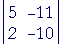 To make the x's cancel: Multiply equation 1) by 2 and equation 2) by −5: