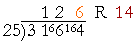 "25 goes into 164 six (6) times (150) with 14 left over."