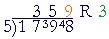 3 is the final remainder. Again, whenever the quotient is 0, the digit beneath it in the dividend remains.