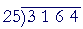 "25 goes into 31 one (1) time (25) with 6 left over."