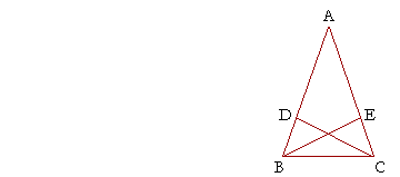 In the overlapping triangles AEB, ADC, the sides BA, AE are equal to the sides CA, AD respectively, by hypothesis. Table of Contents | Introduction | Home Please make a donation to keep TheMathPage online. Copyright © 2006-2007 Lawrence Spector Questions or comments? E-mail: themathpage@nyc.rr.com |