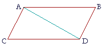 | In a parallelogram the opposite sides and angles are equal, and the diagonal bisects the area. |