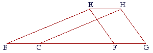 Book I. Propositions 33 and 34Problems Back to Propositions 33, 34. 11. a) State the hypothesis of Proposition 33. To see the answer, pass your mouse over the colored area. Straight lines join the extremities on the same side of two equal and parallel straight lines. 12. b) State the conclusion. Those straight lines are themselves equal and parallel. 12. c) Practice Proposition 33. 12. State the definition of a "parallelogram." A parallelogram is a quadrilateral whose opposite sides are parallel. (Definition 14) 13. a) State the hypothesis of Proposition 34. A figure is a parallelogram. 13. b) State the conclusion. The opposite sides and angles are equal, and the diagonal bisects the area. 13. c) Practice Proposition 34. 14. The straight line ADE is parallel to the straight line BC, and AB is
