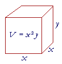 Example 2.   A box having a square base and an open top is to contain 108 cubic feet.  What should its dimensions be so that the material to make it will be a minimum?  That is, what dimensions will cost the least?