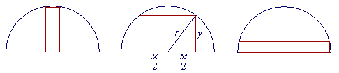 Example 3.   Find the dimensions of the rectangle with the most area that can be inscribed in a semi-circle of radius r.  Show, in fact, that the area of that rectangle is r².