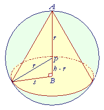 We want to maximize V as a function of h alone.  Therefore we must express s in terms of h and the constant r.